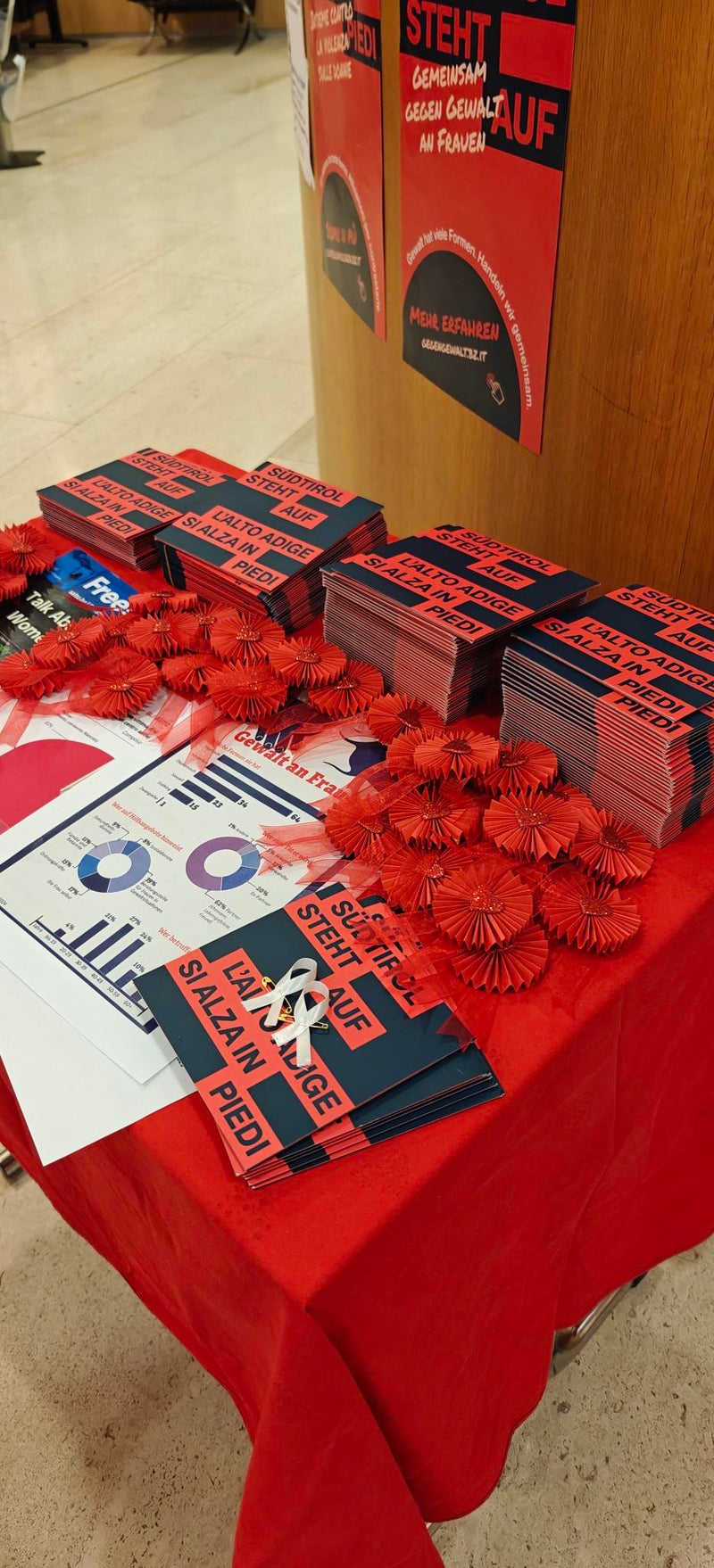 Mit Beginn am Internationalen Tag gegen Gewalt an Frauen am 25. November bis zum Internationalen Tag der Menschenrechte am 10. Dezember beteiligten sich auch dieses Jahr weltweit Gruppen, Vereine, Organisationen und auch sehr viele Einzelpersonen mit vielfältigen Aktionen am Kampf gegen Gewalt an Frauen. Auch in Südtirol haben sehr viele die Sensibilisierungskampagne "Südtirol steht auf" mitgetragen und Aktionen, Flashmobs, Lesungen, Performances, Protestmärsche, Kegel- und Kartenabende und vieles mehr organisiert. Dazu erreichten uns Bilder aus dem ganzen Land, die wir hier gerne veröffentlichen.