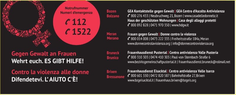Das Landesinstitut für Statistik ASTAT veröffentlicht die Daten für das Jahr 2024 zu den Beratungsstellen für Frauen in Gewaltsituationen und Wohneinrichtungen in Südtirol. Insgesamt wenden sich 832 Frauen an diese Stellen, um einen Weg aus einer Gewaltsituation zu finden. Dabei handelt es sich in den meisten Fällen um psychische Gewalt (90 % der Fälle), gefolgt von körperlicher Gewalt (64 %). Dieses Phänomen findet überwiegend im heimischen Umfeld statt: In 62 % der Fälle ist der Täter der aktuelle Partner, in 20 % der ehemalige Partner.